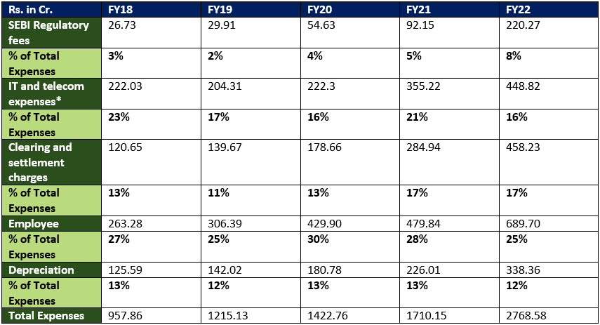 Just like any other company, NSE ltd also has a lot of expenses that are incurred regularly to ensure the smooth operations of the business. These are the major heads of expenses.