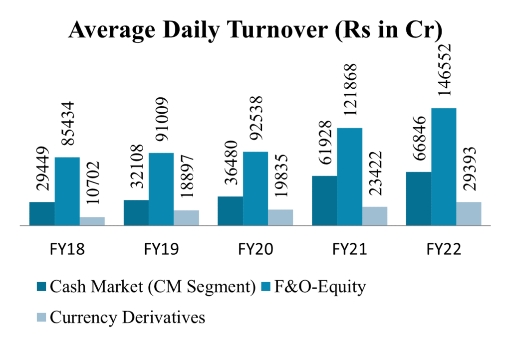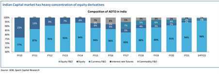 Equity Derivatives – where NSE enjoys 100% market share contributes around 96% of total average daily turnover of Indian capital market.