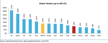 The level of capital market penetration is just 5% in India vis a vis 35-40% in developed countries. For an economy to grow, capital market development is imperative, and this provides huge scope of growth for NSE in terms of volumes and turnover.