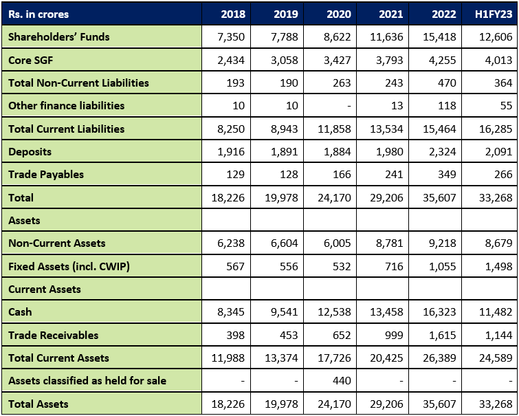 Balance Sheet of NSE ltd. For the years 2018-2022