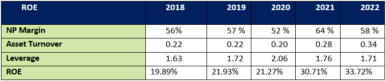 Return on Equity ratio for years 2018-2022