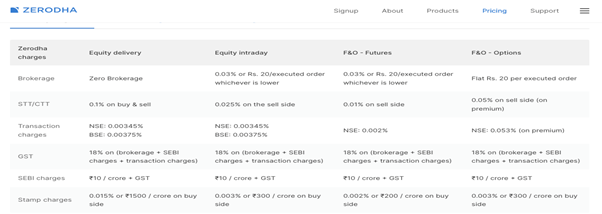 One such example of transaction charges charged by Zerodha (a broker) is shared in this snapshot below.