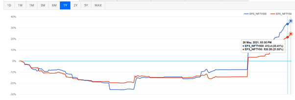 Nifty 50 vs Nifty 500 EPS Growth in the last 1 year